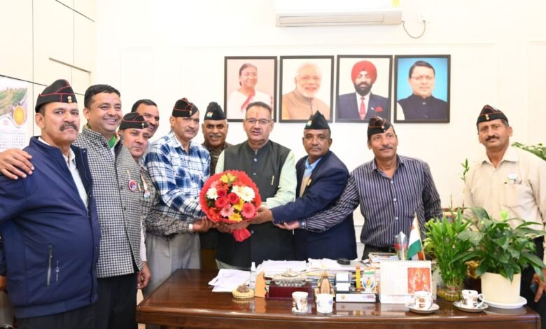 कोटद्वार के पूर्व सैनिक संघर्ष समिति के पदाधिकारियों ने सैनिक कल्याण मंत्री गणेश जोशी से की मुलाकात