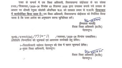 डीएम के निर्देश पर 24 घंटे के भीतर रा.प्रा.वि. लिस्ट्राबाद में शिक्षिका की तैनाती इठारना में आयोजित बहुउद्देशीय शिविर में…